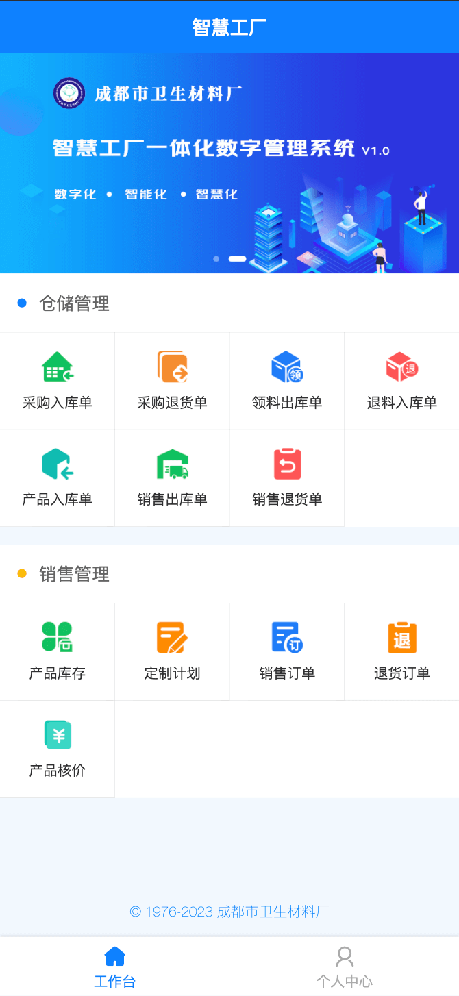 【成都市衛(wèi)生材料廠】智慧工廠一體化數(shù)字管理系統(tǒng)V1.0